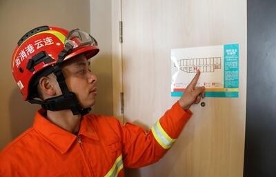 當天上午,消防隊員一進入到賓館的房間后,首先提醒大家的是,入住賓館后要先了解逃生路線,他指著房門后的逃生疏散示意圖介紹道,“一般來說,商場、KTV、賓館、飯店等公共場所都會在大門口、樓道口或者房門后等醒目位置,張貼出這個區域的逃生疏散圖,圖上會標注出疏散路線以及安全出口、逃生通道的具體位置。當大家來到這樣的場所時,一定要有意識地查看一下逃生疏散圖,注意觀察安全出口和疏散通道的位置,記住疏散方向,只有這樣才能在發生突發情況時,做到快速安全地撤離。”