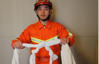 消防隊員表示,這樣給床單打結,不但能最大程度節約床單的長度,而且打成的結不容易打滑,不會輕易松掉。在逃生時,確保繩結結實不松即可。除了床單之前要打好結外,還要在床單逃生繩上,每隔一小段打一個小結,為了方便逃生。